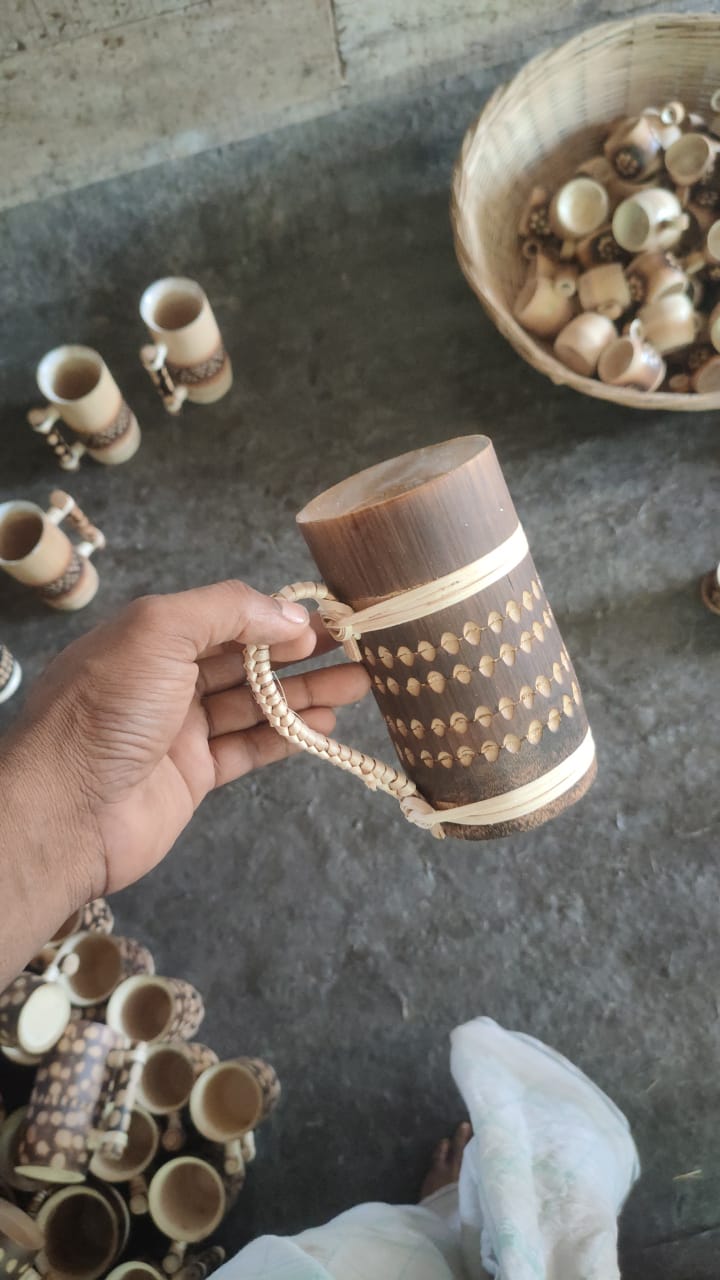 A handmade bamboo beer mug. The natural bamboo pattern on the mug makes it minimal yet beautiful. It is ideal for drinking beer. The bamboo nature of the mug incorporates into the taste of whatever you drink, increasing the flavour. It was made with a traditional handicraft technique. The outside of the mug has been smoothened and polished to give it a look unique to itself.